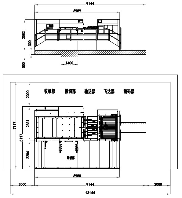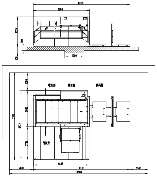 | 整機(jī)尺寸 | 7470×4256×2350mm (長含預(yù)上紙軌道;寬含腳踏板) | 9551×4506×2467mm (長含預(yù)上紙軌道;寬含腳踏板) | 9464×4688×2435mm (長含預(yù)上紙軌道;寬含腳踏板) | 9956×4706×2452mm (長含預(yù)上紙軌道;寬含腳踏板) | 10690×5117×2582mm (長含預(yù)上紙軌道;寬含腳踏板) |