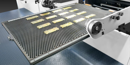 15mm合成材料精磨模切支撐板,配置中央定位5mm硬模切鋼板 4mm+1mm層夾模切鋼板及+/-0.9mm縱橫向微調裝置,校版方便快捷。