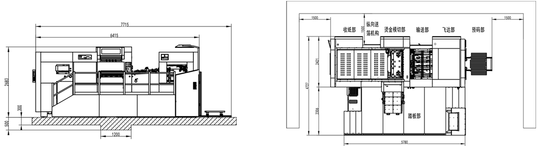 | 整機尺寸(含板框預裝架) | 7715×5627×2683mm(長含預上紙軌道;寬含腳踏板) |