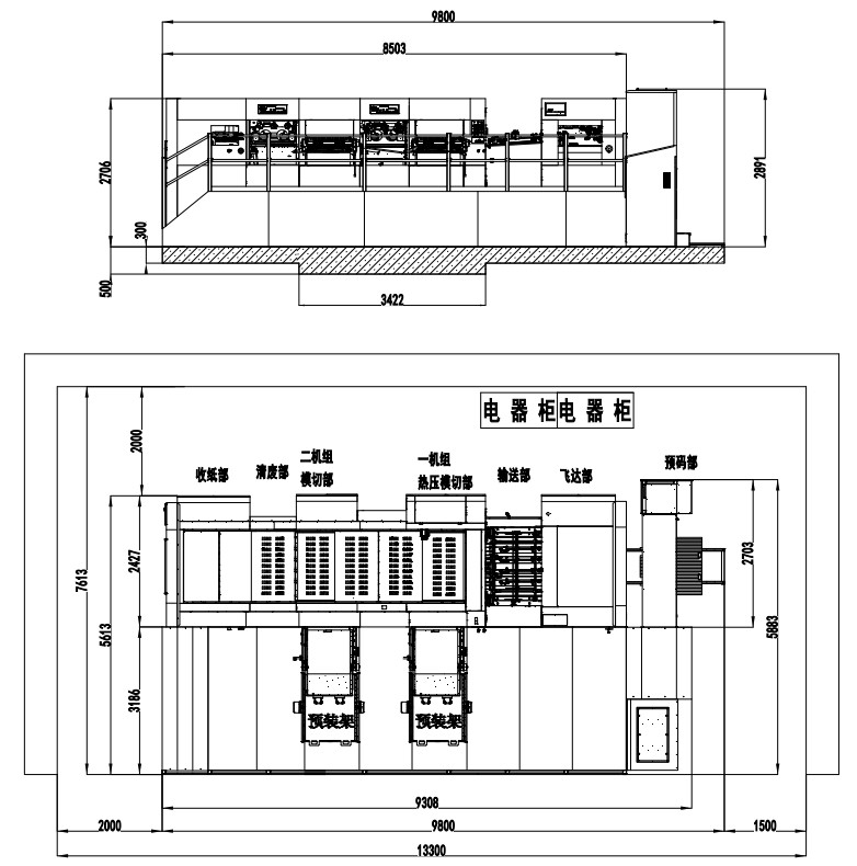 | 整機(jī)尺寸(含板框預(yù)裝架) | 9800×7613×2891mm |
