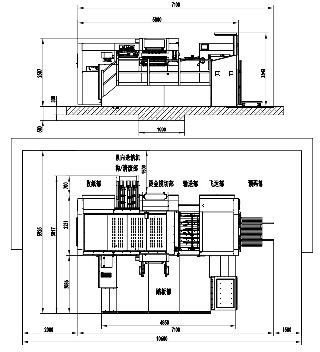 | Machine Dimensions | 7100×5017×2643mm(L×W×H) (L: paper prepared track included, W: platform included) |