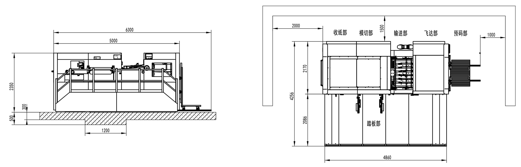 | Machine Dimensions | 6300×4256×2350mm (L×W×H) (L: paper prepared track included, W: platform included) |