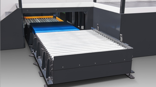 ● Front edge waste removal system removes and transfers waste edge outside the machine via conveyor belt.